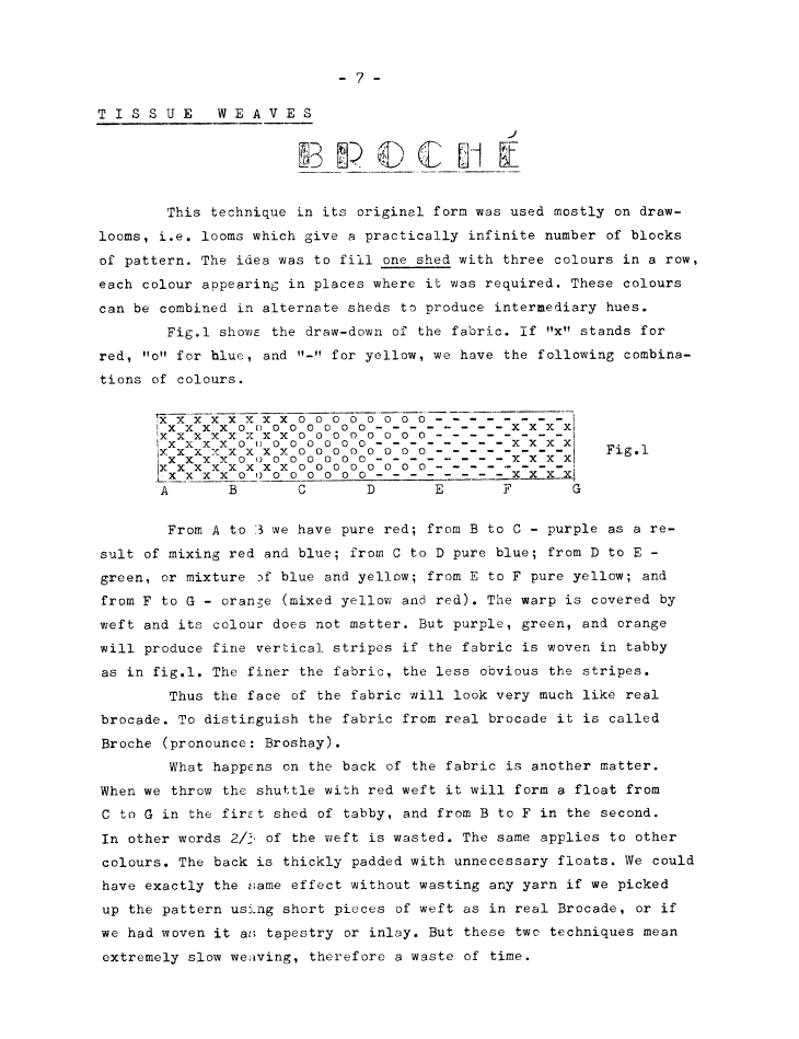 Tissue Weaves - Broché, ---. Master Weaver, No. 59 September 1961, 4 pages. Note: PDF provided by Judith Combs. By permission. Posted July 15, 2006. SAMPLE PAGE. File size 735 KB PDF