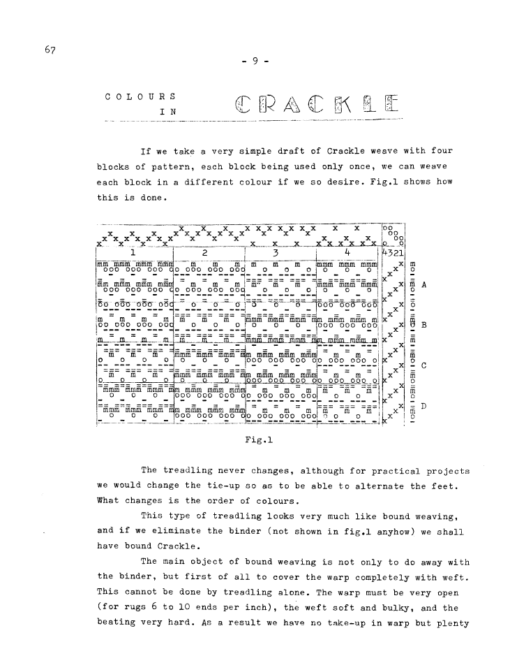 Colours in Crackle, ---. Master Weaver, No. 67 January 1963, 4 pages. Note: PDF provided by Judith Combs. By permission. Posted July 15, 2006. SAMPLE PAGE. File size 655 KB PDF