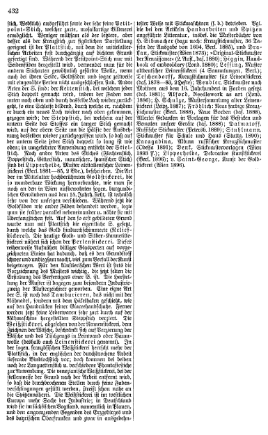 Stickerei [Embroidery], ---. Meyers Konversations-Lexikon, 1897, 2 pages. Posted January 21, 2004. SAMPLE PAGE. File size 568 KB PDF