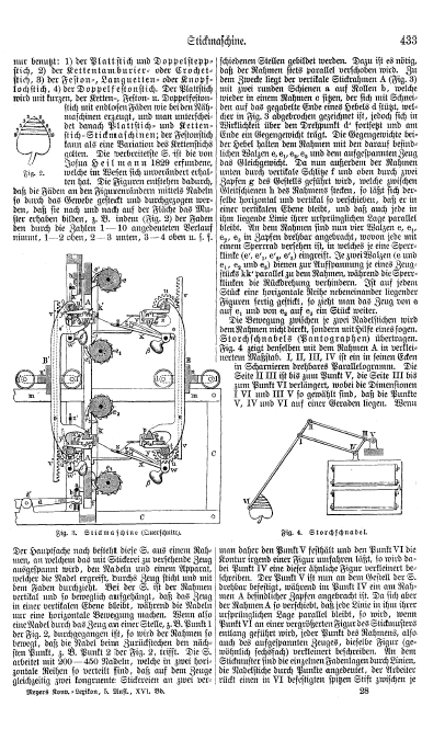 Stickmaschine [Knitting Machine], ---. Meyers Konversations-Lexikon, 1897, 3 pages. Posted July 18, 2003. SAMPLE PAGE. File size 696 KB PDF