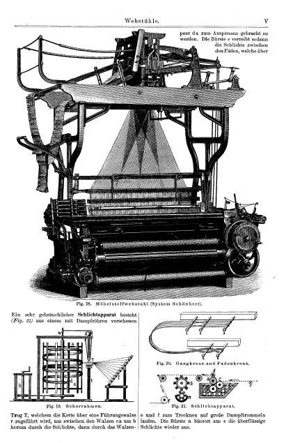 Webstühle [Looms], ---. Meyers Konversations-Lexikon, 1897, 6 pages. Posted July 4, 2003. SAMPLE PAGE. File size 1.2 MB PDF