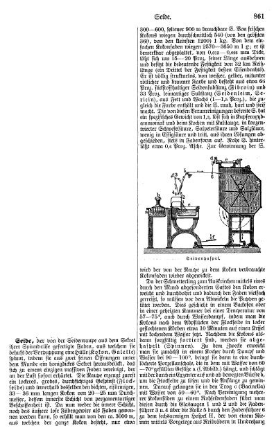 Seide [Silk], ---. Meyers Konversations-Lexikon, 1897, 4 pages. Posted July 8, 2003. SAMPLE PAGE. File size 896 KB PDF