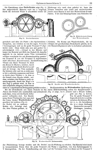 Spinnen [Spinning], ---. Meyers Konversations-Lexikon, 1897, 12 pages. Posted July 10, 2003. SAMPLE PAGE. File size 2 MB PDF