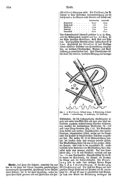 Wolle [Wool], ---. Meyers Konversations-Lexikon, 1897, 4 pages. Posted July 4, 2003. SAMPLE PAGE. File size 964 KB PDF