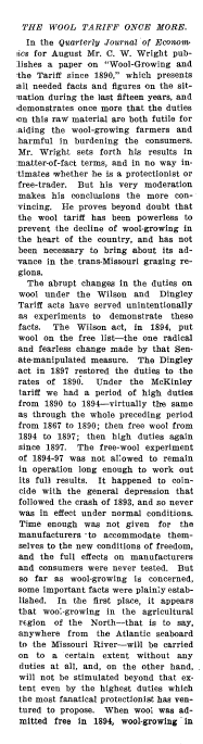 Wool Tariff Once More, ---. Nation, Vol. 81 (1905), 2 pages. CD (HWDA09). Posted October 2, 2003. SAMPLE PAGE. File size 552 KB PDF