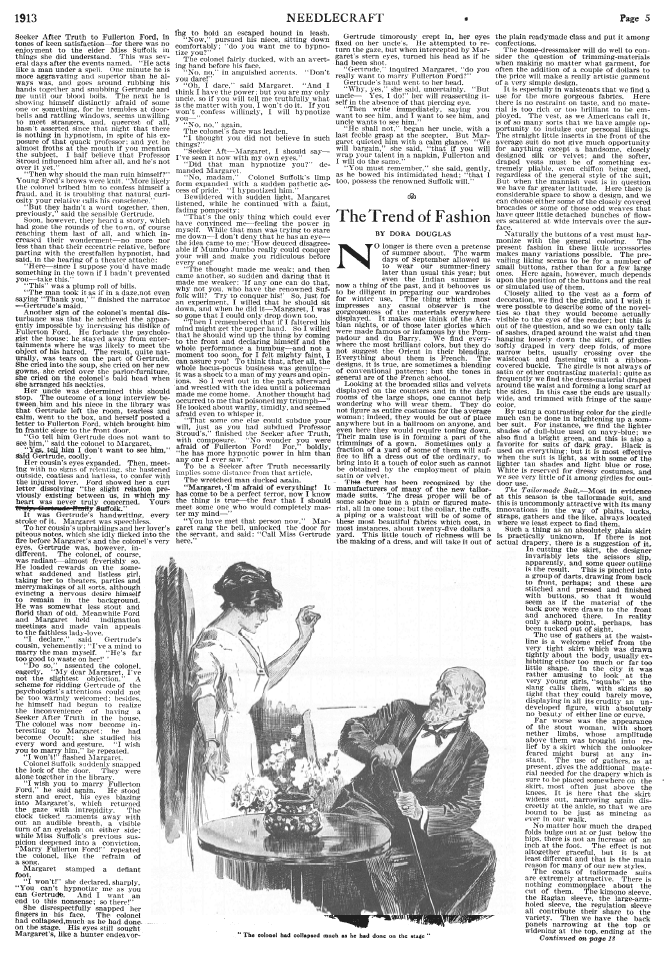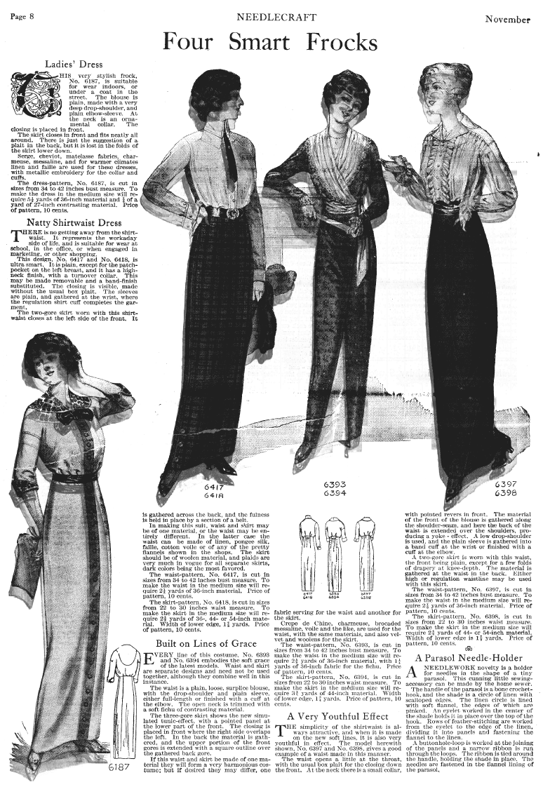 [Fashion Trends], ---. Needlecraft Magazine , November 1912, 5 pages. Note: PDF provided by Judith Combs. Posted July 7, 2006. SAMPLE PAGE. File size 2.84 MB PDF