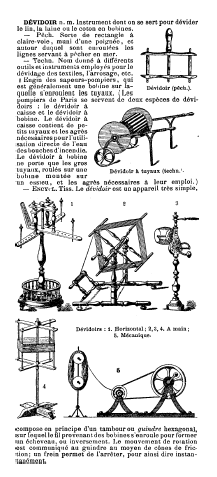 Dévidior [Reeler], ---. Nouveau Larousse Illustré, 1904, 1 page. Posted August 19, 2003. SAMPLE PAGE. File size 444 KB PDF