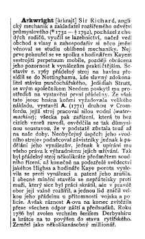 Arkwright, Sir Richard, ---. Ottuv Slovník Naucný [Scientific Dictionary], 1897, 1 page. Posted January 27, 2004. SAMPLE PAGE. File size 432 KB PDF