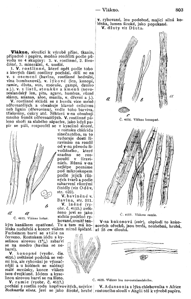 Vlákno [Fiber], ---. Ottuv Slovník Naucný [Scientific Dictionary], 1897, 3 pages. Posted August 19, 2003. SAMPLE PAGE. File size 624 KB PDF