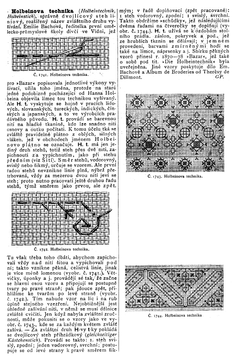 Holbeinova Technika [Holbein Stitch], ---. Ottuv Slovník Naucný [Scientific Dictionary], 1897, 1 page. Posted August 12, 2003. SAMPLE PAGE. File size 576 KB PDF