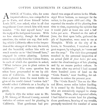 Cotton Experiments in California, ---. Overland, Vol. 6 (1871), 10 pages. CD (HWDA09). Posted September 29, 2003. SAMPLE PAGE. File size 1 MB PDF