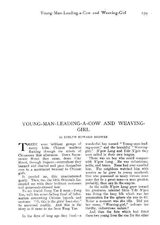 Young-Man-Leading-a-Cow and Weaving-Girl, Browne, Evelyn Howard. Overland, Vol. 36, No. 213 (September 1900), 2 pages. CD (HWDA12). Posted March 8, 2005. SAMPLE PAGE. File size 492 KB PDF