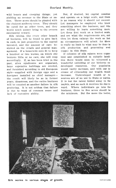 Silk Culture in California, Williams, Carrie. Overland, Vol. 40 (1902), 6 pages. CD (HWDA09). Posted September 24, 2003. SAMPLE PAGE. File size 996 KB PDF
