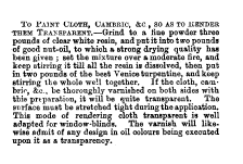 To Paint Cloth, Cambrics, &c, ---. People's Friend, 1872, 1 page. CD (HWDA09). Posted June 17, 2004. SAMPLE PAGE. File size 404 KB PDF