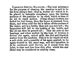 Cleaning Sewing Machines, ---. People's Friend, 1872, 1 page. CD (HWDA09). Posted June 17, 2004. SAMPLE PAGE. File size 408 KB PDF