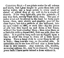 Cleaning Silk, ---. People's Friend, 1872, 1 page. CD (HWDA09). Posted June 17, 2004. SAMPLE PAGE. File size 412 KB PDF