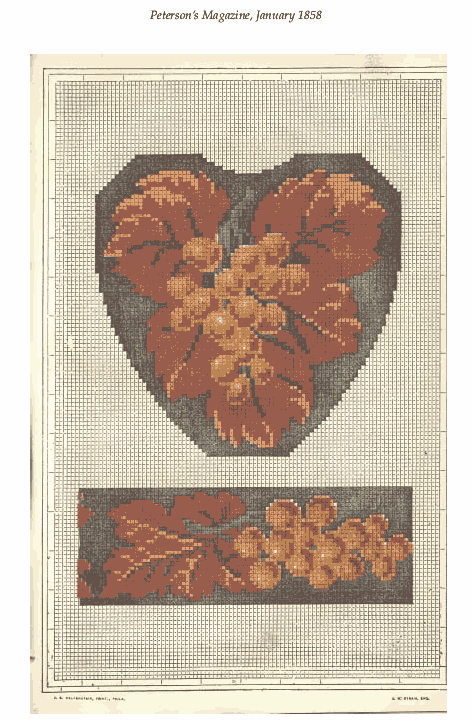 [costume and design pages], ---. Peterson's Magazine, Vol. 33, No. 1, January 1858, 7 pages. CD (LDA01). Posted November 6, 2002. SAMPLE PAGE. File size 2.3 MB PDF