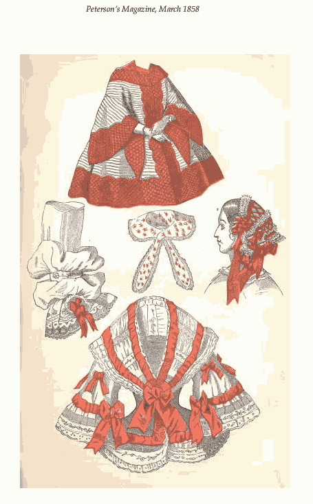 [costume and design pages], ---. Peterson's Magazine, Vol. 33, No. 3, March 1858, 18 pages. CD (LDA01). Posted November 6, 2002. SAMPLE PAGE. File size 7.4 MB PDF