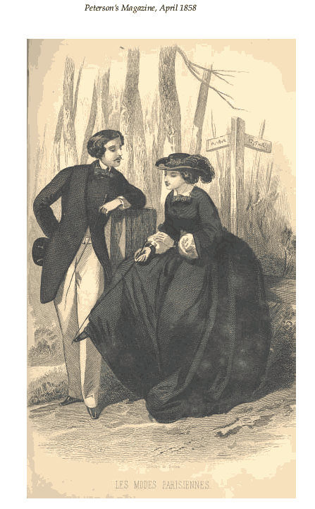 [costume and design pages], ---. Peterson's Magazine, Vol. 33, No. 4, April 1858, 8 pages. CD (LDA01). Posted November 6, 2002. SAMPLE PAGE. File size 2.1 MB PDF
