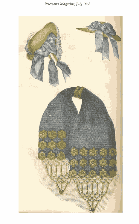 [costume and design pages], ---. Peterson's Magazine, Vol. 33, No. 7, July 1858, 8 pages. CD (LDA01). Posted November 6, 2002. SAMPLE PAGE. File size 4 MB PDF
