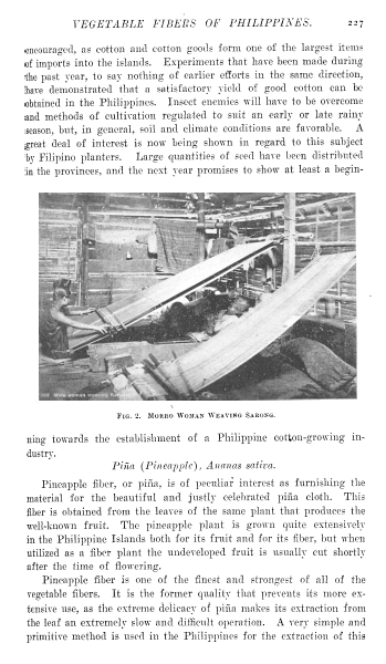 Vegetable Fibers of the Philippine Islands, Edwards, H. Taylor. Popular Science Monthly, Vol. 76 (1905), 9 pages. CD (HWDA09). Posted October 1, 2003. SAMPLE PAGE. File size 1 MB PDF