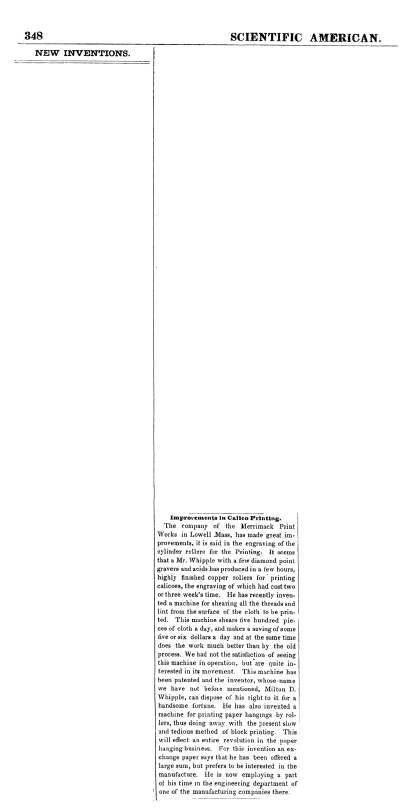 Improvements in Calico Weaving, ---. Scientific American, Vol. 2, No. 44 (1847), 1 page. CD (HWDA12). Posted March 6, 2005. SAMPLE PAGE. File size 584 KB PDF