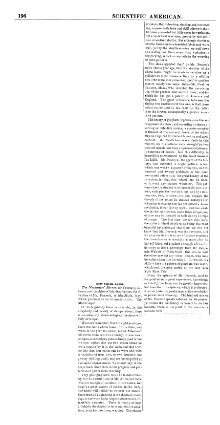 New Check Loom, ---. Scientific American, Vol. 2, No. 25 (1847), 1 page. CD (HWDA12). Posted March 6, 2005. SAMPLE PAGE. File size 596 KB PDF