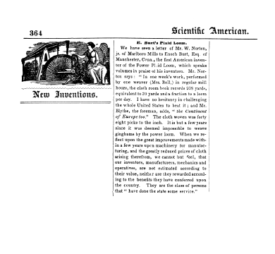 E. Burt's Plaid Loom, ---. Scientific American, Vol. 3, No. 46 (1848), 1 page. CD (HWDA12). Posted March 6, 2005. SAMPLE PAGE. File size 472 KB PDF