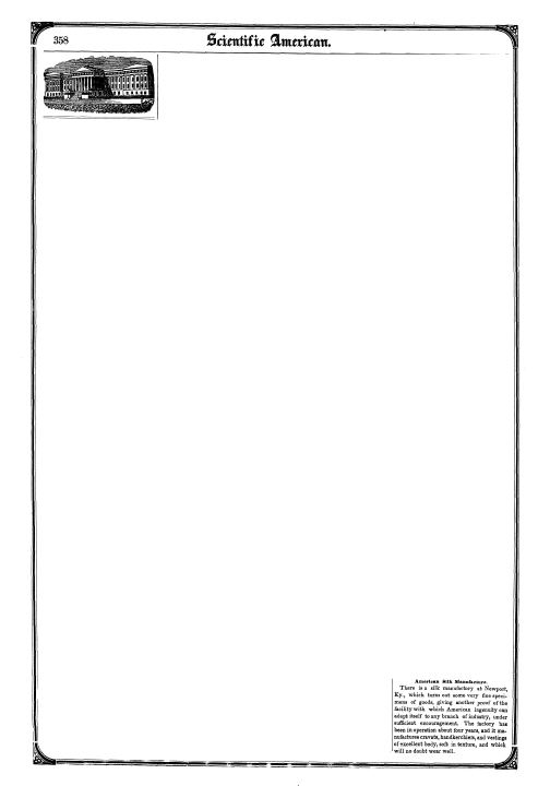 American Silk Manufacture, ---. Scientific American, Vol. 7, No. 45 (1852), 1 page. CD (HWDA12). Posted March 7, 2005. SAMPLE PAGE. File size 676 KB PDF