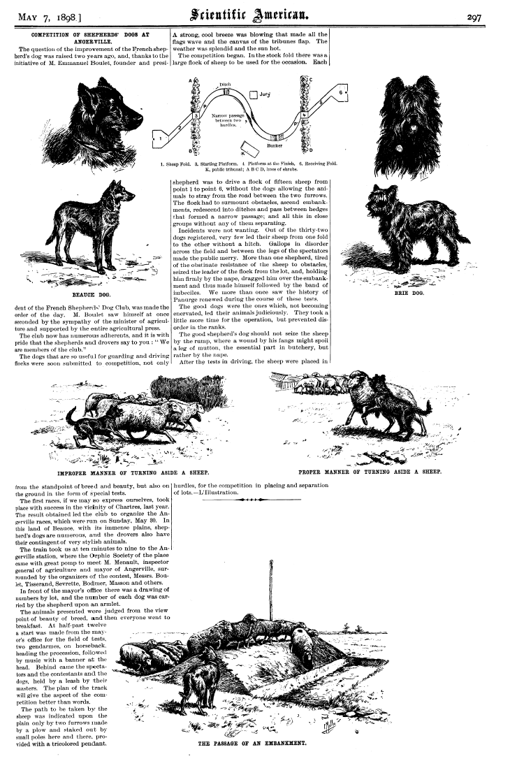 Competition of Shepherds' Dogs at Angerville, ---. Scientific American, May 7, 1898, 1 page. Note: Reduced to 70% to fit on page. CD (HWDA08). Posted February 17, 2004. SAMPLE PAGE. File size 672 KB PDF