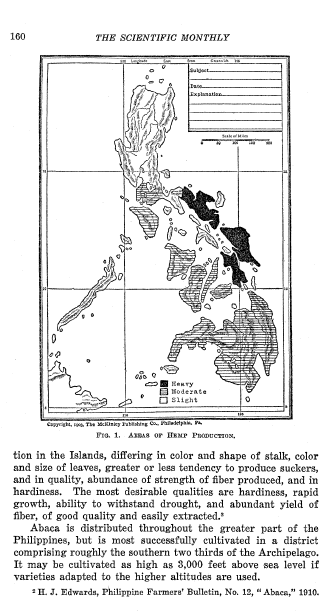 Abaca (Manila Hemp): The Fiber Monopoly of the Philippine Islands, Lee, George Sterling. Scientific Monthly, Vol. 11 (1920), 12 pages. CD (HWDA07). Posted December 14, 2003. SAMPLE PAGE. File size 1.3 MB PDF