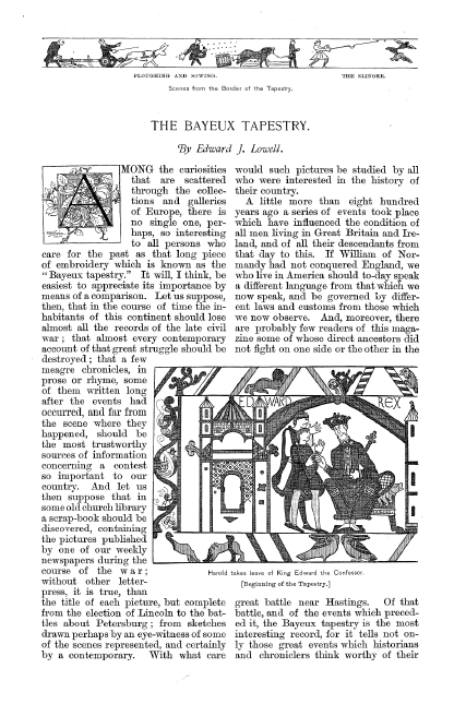 Bayeux Tapestry, Lowell, Edward J. Scribner's Magazine, Vol. 1, No. 3 (March 1887), 15 pages. CD (HWDA11). Posted October 6, 2004. SAMPLE PAGE. File size 6.9 MB PDF