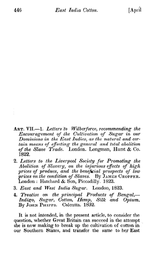 East India Cotton, ---. Southern Quarterly Review, Vol. 2, No. 2 (1842), 48 pages. CD (HWDA12). Posted December 1, 2004. SAMPLE PAGE. File size 6.4 MB PDF
