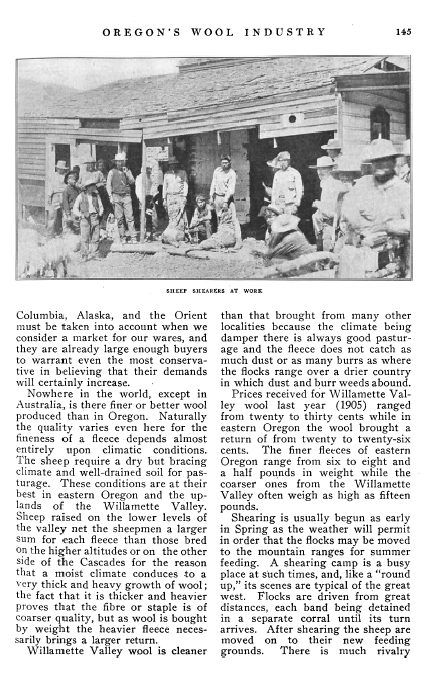 Oregon's Wool Industry, Marshall, Emma Seckle. Sunset Magazine, Vol. 17 (1906), 4 pages. CD (HWDA09). Posted September 19, 2003. SAMPLE PAGE. File size 704 KB PDF
