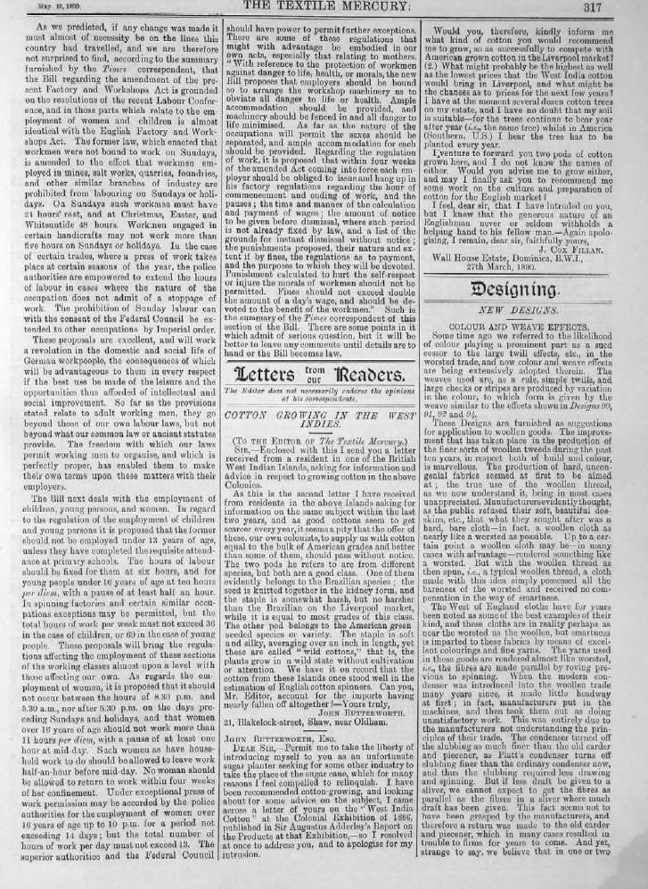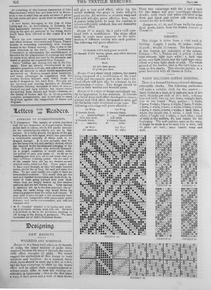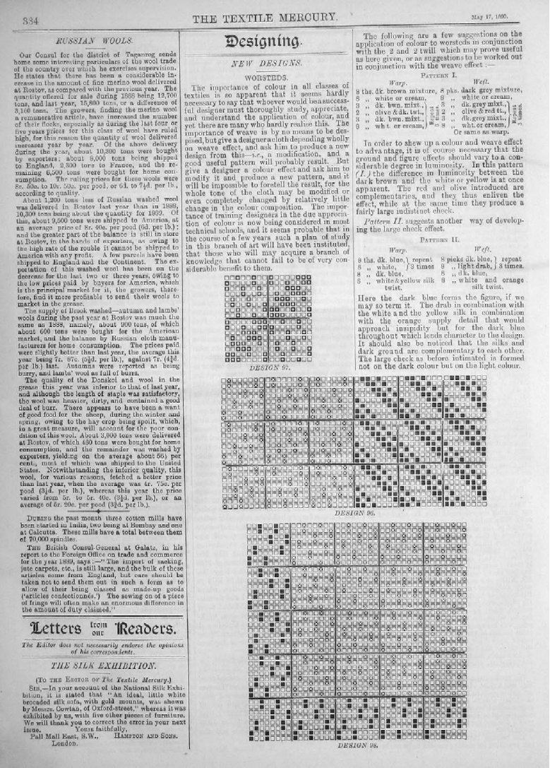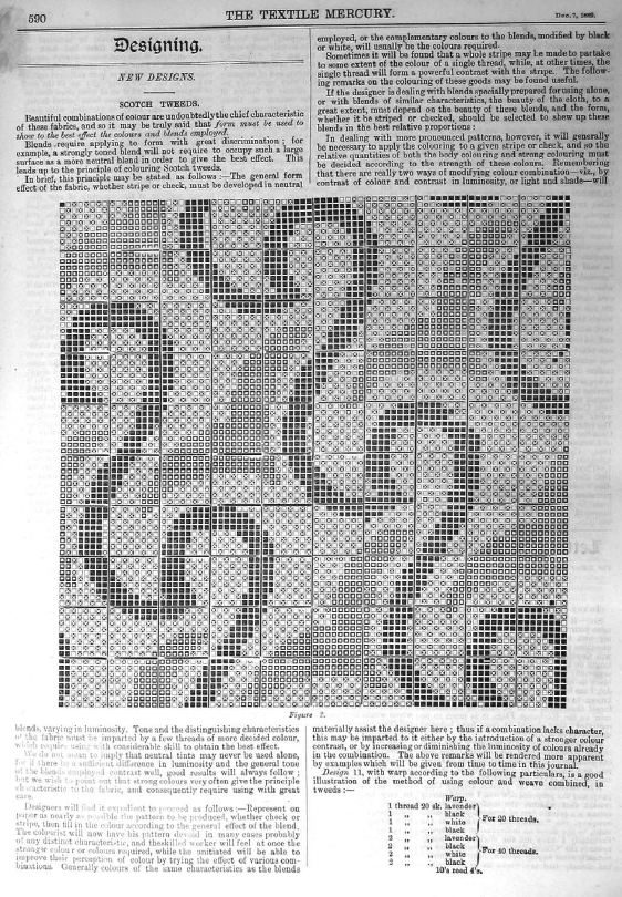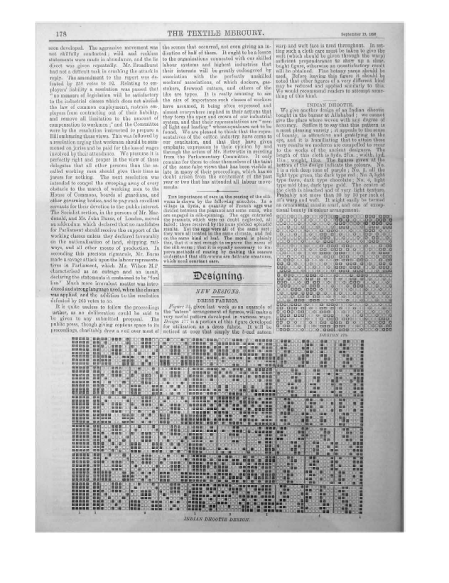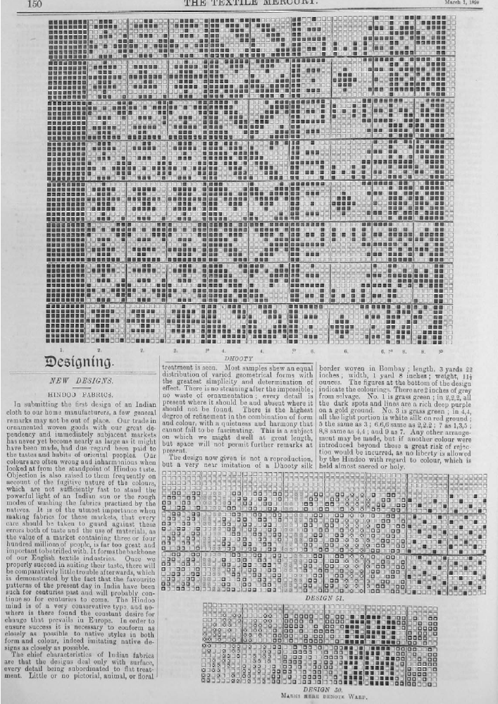 Designing, ---. Textile Mercury , Vol. 6 (1892), 2 pages. Note: Digital photography. Posted August 22, 2006. SAMPLE PAGE. File size 619 KB PDF