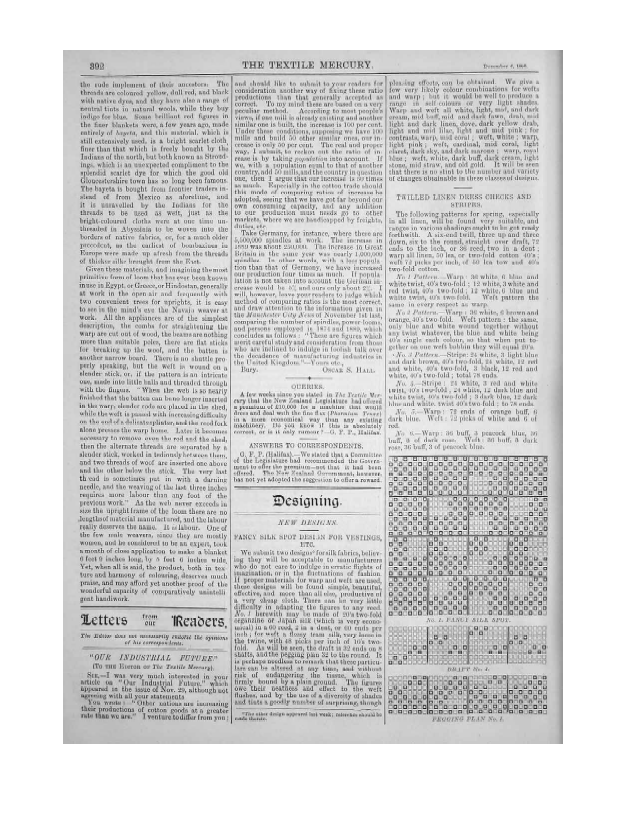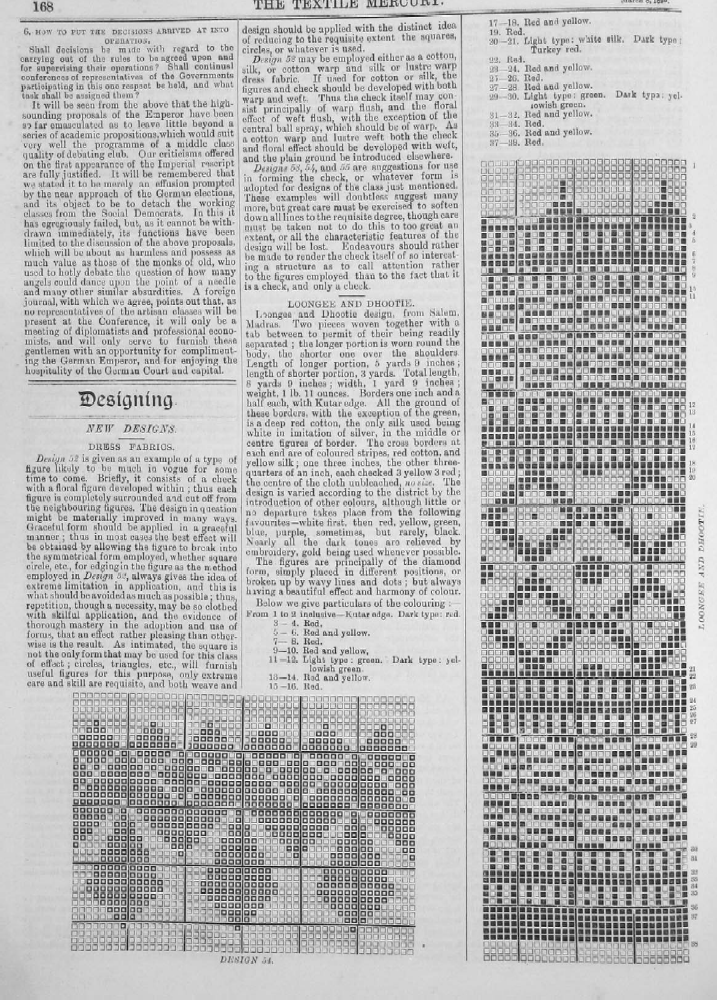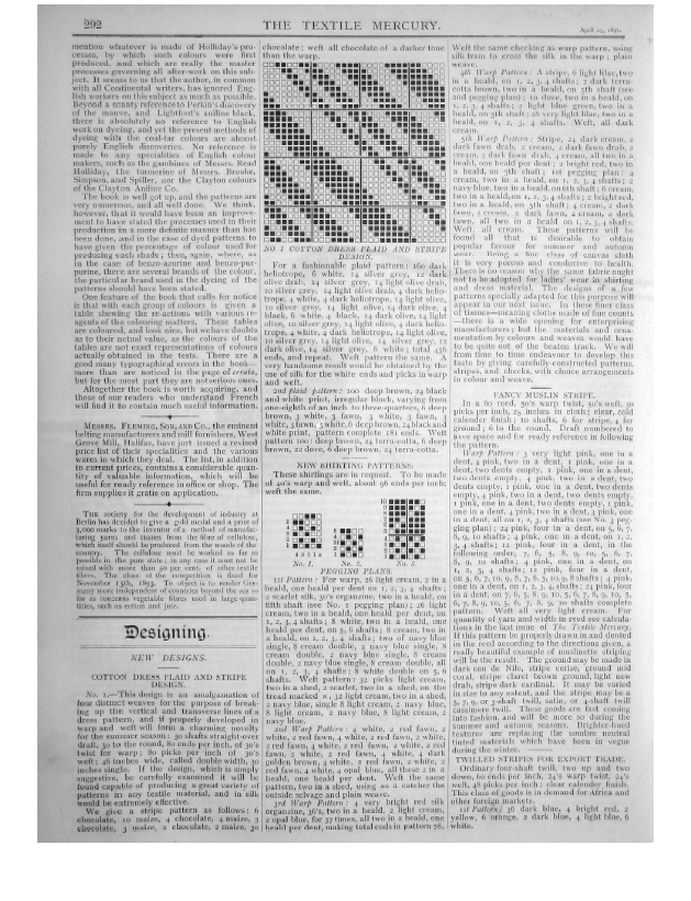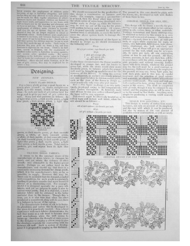 Designing, ---. Textile Mercury , Vol. 6 (1892), 2 pages. Note: Digital photography. Posted August 22, 2006. SAMPLE PAGE. File size 325 KB PDF