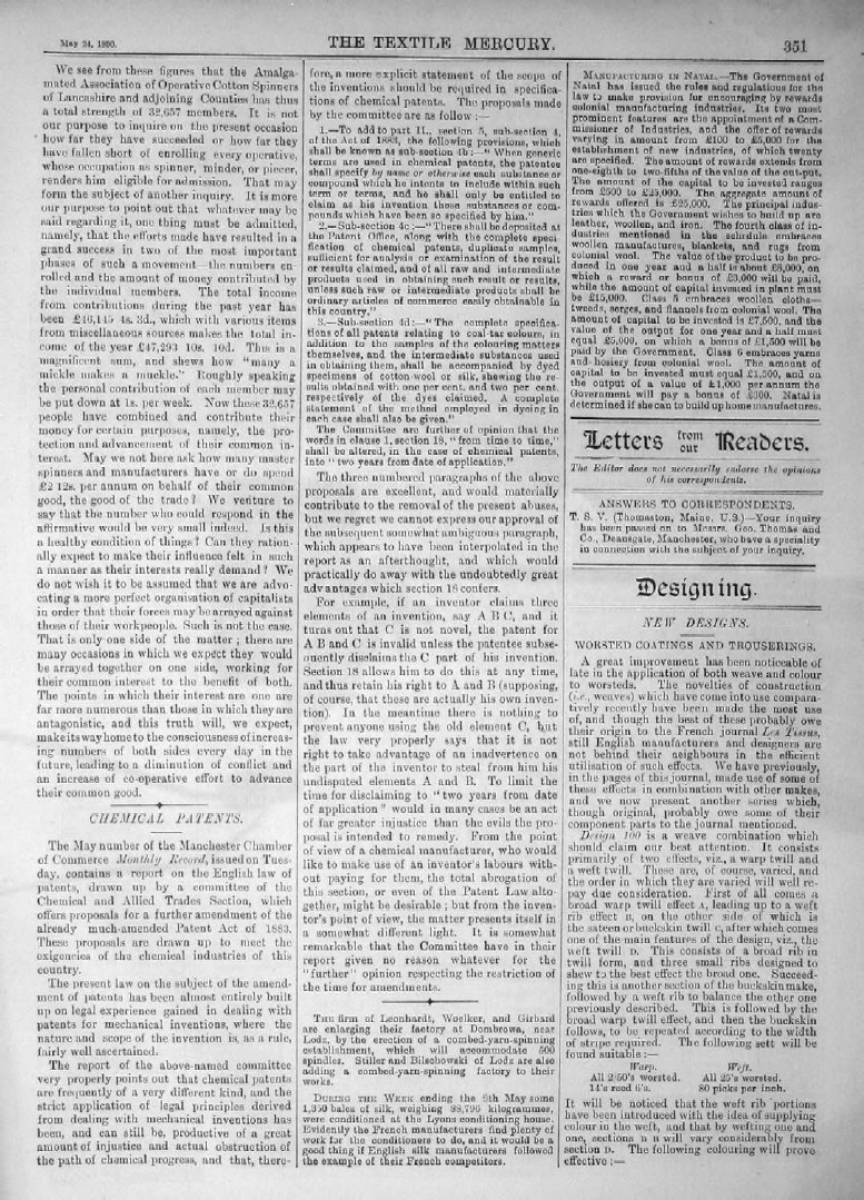 Patents, ---. Textile Mercury , Vol. 2 (1890), 3 pages. Note: Digital photography. Posted July 8, 2006. SAMPLE PAGE. File size 1 MB PDF
