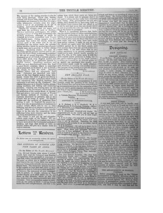 Machinery and Appliances, ---. Textile Mercury , Vol. 2 (1890), 3 pages. Note: Digital photography. Posted July 8, 2006. SAMPLE PAGE. File size 882 KB PDF