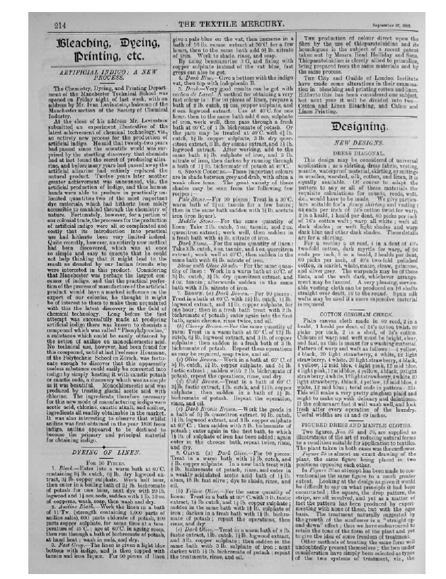 Designing, ---. Textile Mercury, September 20, 1890, 2 pages. Note: Digital photography. Posted September 10, 2006. SAMPLE PAGE. File size 1.23 MB PDF