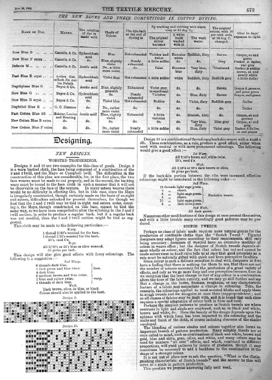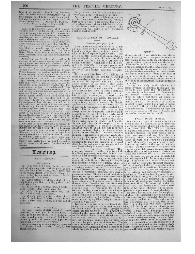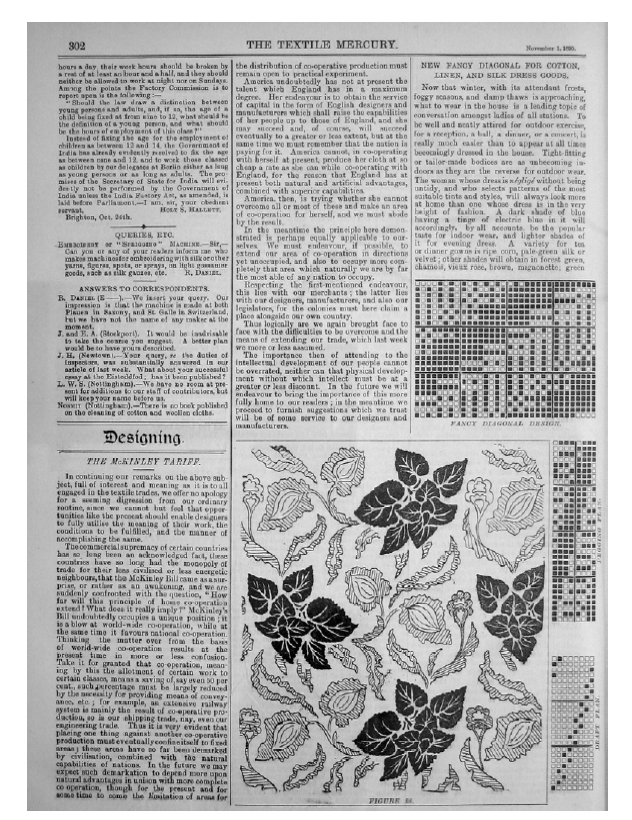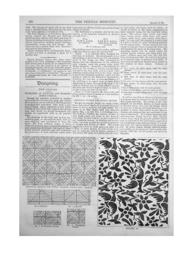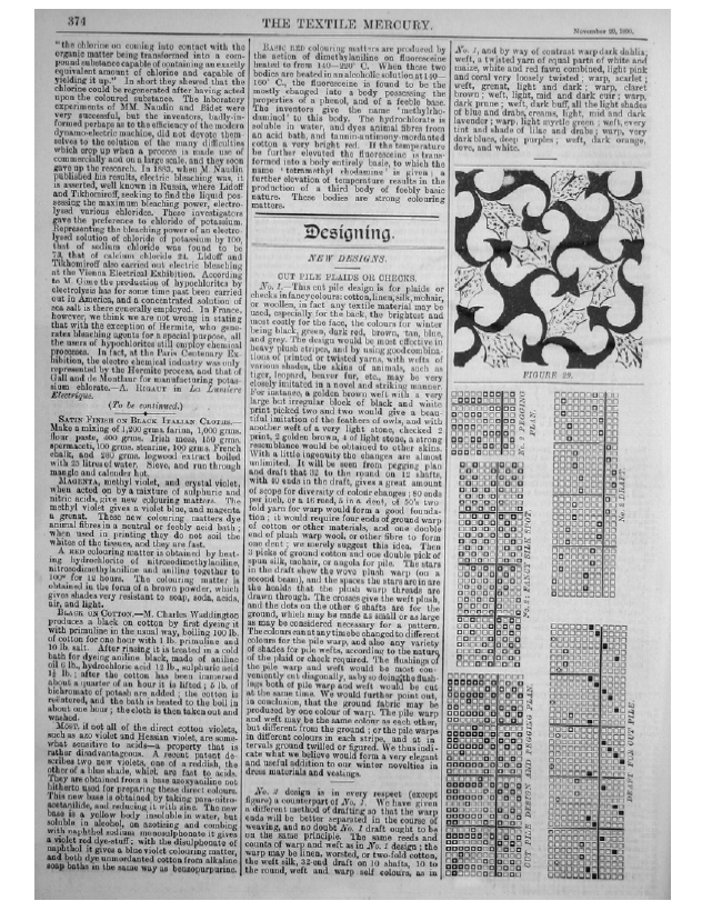 Designing, ---. Textile Mercury , Vol. 2 (1890), 3 pages. Note: Digital photography. Posted July 10, 2006. SAMPLE PAGE. File size 1 MB PDF