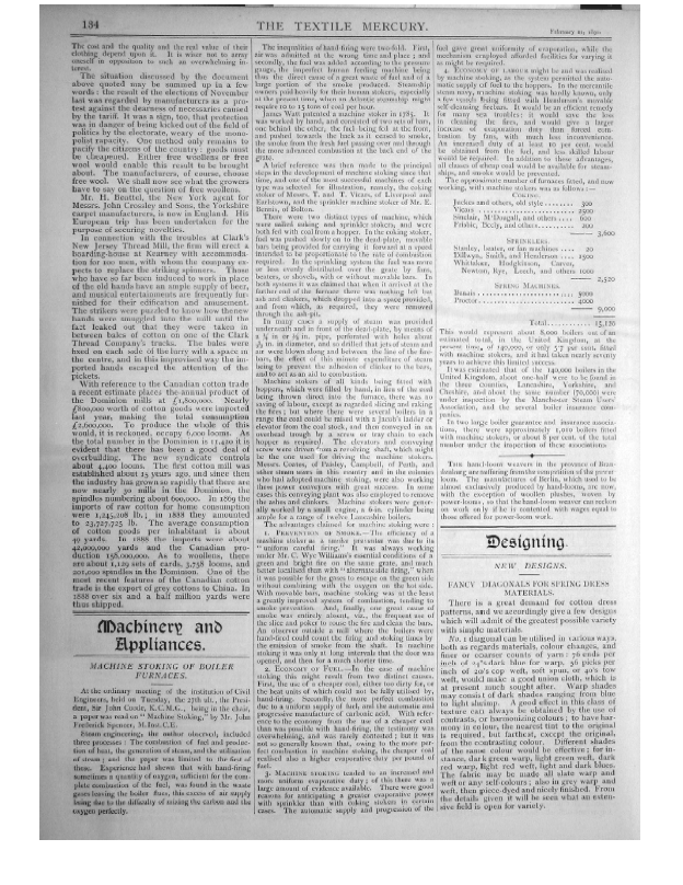Machinery and Appliances, ---. Textile Mercury , Vol. 2 (1890), 2 pages. Note: Digital photography. Posted July 8, 2006. SAMPLE PAGE. File size 417 KB PDF
