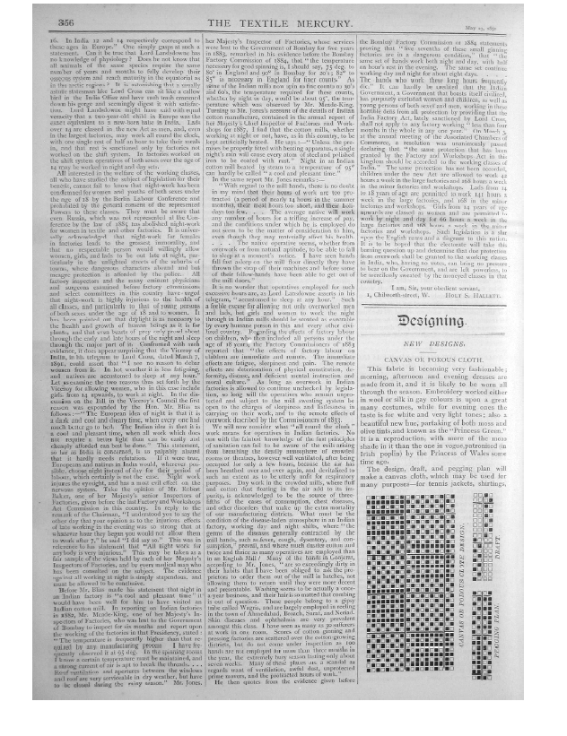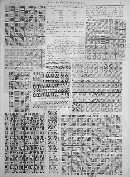 Designing, ---. Textile Mercury , Vol. 6 (1892), 2 pages. Note: Digital photography. Posted August 22, 2006. SAMPLE PAGE. File size 4.83 MB PDF