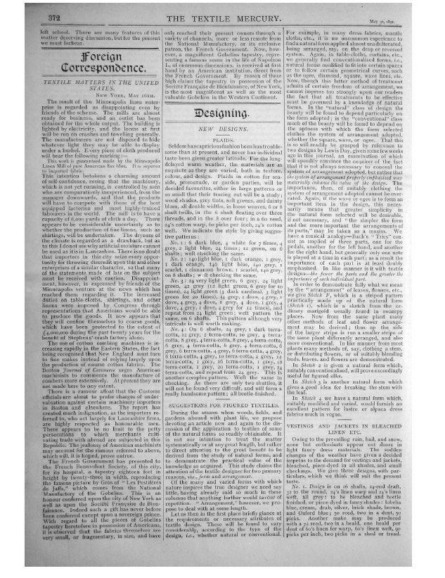 Designing, ---. Textile Mercury , Vol. 2 (1890), 2 pages. Note: Digital photography. Posted July 8, 2006. SAMPLE PAGE. File size 704 KB PDF