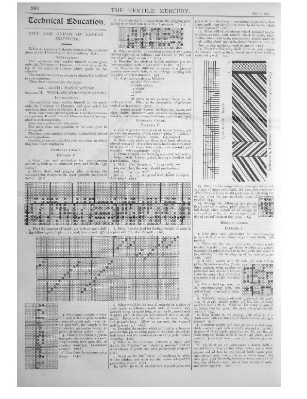 Technical Education, ---. Textile Mercury , Vol. 4 (1891), 4 pages. Note: Digital photography. Posted August 1, 2006. SAMPLE PAGE. File size 8.12 MB PDF