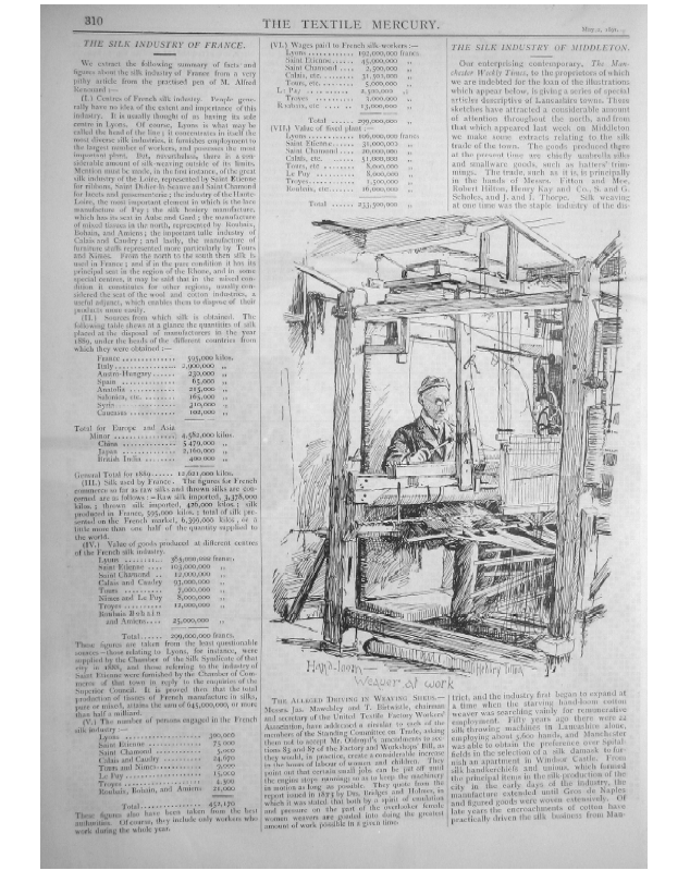 The Silk Industry of France, ---. Textile Mercury , Vol. 4 (1891), 2 pages. Note: Digital photography. Posted August 1, 2006. SAMPLE PAGE. File size 4 MB PDF