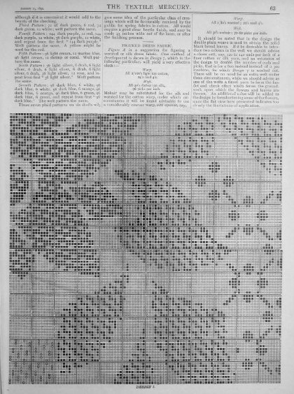 Designing, ---. Textile Mercury , Vol. 6 (1892), 2 pages. Note: Digital photography. Posted August 22, 2006. SAMPLE PAGE. File size 693 KB PDF