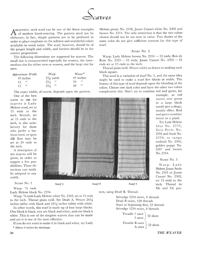 Scarves, ---. Weaver, Vol. 1 No. 1 (January 1936), 3 pages. Note: PDF provided by Judith Combs. Posted September 2, 2006. SAMPLE PAGE. File size 305 KB PDF