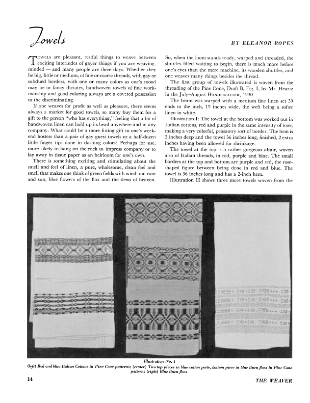 Towels, Ropes, Eleanor. Weaver, Vol. 1 No. 3 (July 1936), 3 pages. Note: PDF provided by Judith Combs. Posted September 2, 2006. SAMPLE PAGE. File size 290 KB PDF