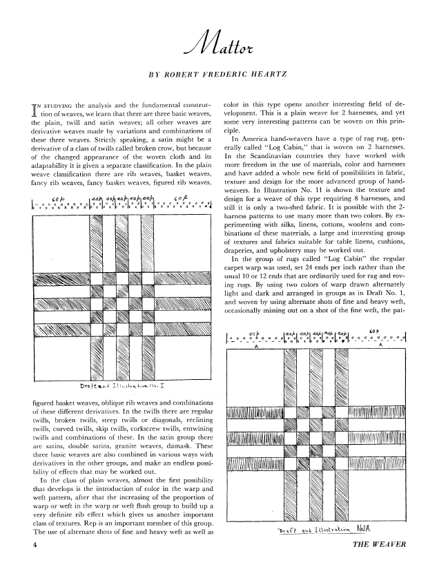 Mattor, Heartz, Robert Frederick. Weaver, Vol. 1 No. 4 (October 1936), 7 pages. Note: PDF provided by Judith Combs. Posted September 2, 2006. SAMPLE PAGE. File size 1.3 MB PDF