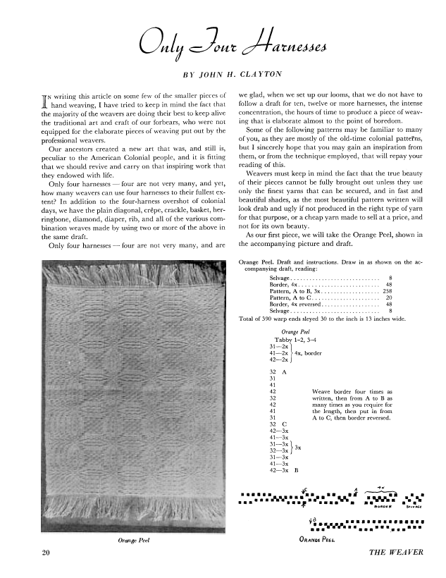 Only Four Harnesses, Clayton, John H. Weaver, Vol. 1 No. 4 (October 1936), 5 pages. Note: PDF provided by Judith Combs. Posted September 2, 2006. SAMPLE PAGE. File size 386 KB PDF